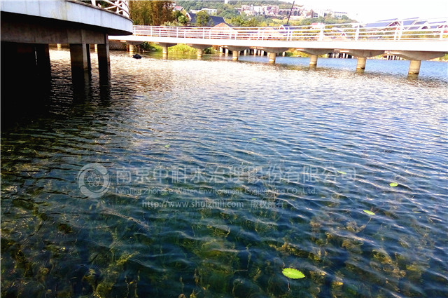 南北水塘水生態(tài)修復(fù)示范項目由南京中科水治理股份有限公司進行設(shè)計施工一體化工程,工程總面積22.8萬㎡,平均水深2.2m。南北水塘在修復(fù)前為典型的富營養(yǎng)化水體,清水型生態(tài)系統(tǒng)構(gòu)建技術(shù)工程施工后,主要水質(zhì)將達到地表水環(huán)境治理標準GB3838-2002 Ⅳ類以上,透明度達到1.5m及以上,且每年不少于300日。