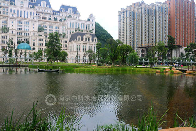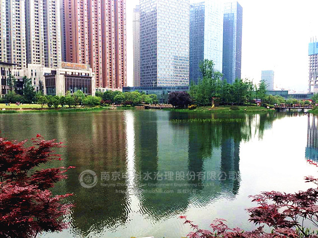 南京中科水治理股份有限公司于2013年12月10日開始,對(duì)景觀湖進(jìn)行清水型生態(tài)系統(tǒng)構(gòu)建工程,實(shí)施的主要內(nèi)容有:水體透明度提升、挺水植物、沉水植物群落構(gòu)建,魚類、大型底棲動(dòng)物群落構(gòu)建,水質(zhì)指標(biāo)監(jiān)測(cè),及養(yǎng)護(hù)管理。2014年2月17日,清水型生態(tài)系統(tǒng)構(gòu)建工程較計(jì)劃提前1個(gè)月完工并通過驗(yàn)收。至今,主要水質(zhì)指標(biāo)仍達(dá)到《國(guó)家地表水環(huán)境質(zhì)量標(biāo)準(zhǔn)》GB3838-2002Ⅱ類水標(biāo)準(zhǔn),超過合同規(guī)定的 Ⅳ類水要求,水質(zhì)清澈見底,水生動(dòng)植物多樣性提高,有效抑制了水體富營(yíng)養(yǎng)化趨勢(shì)。