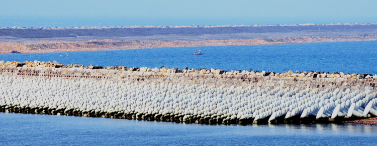 石壩消浪技術(shù)具有消浪效果好、使用年限長、結(jié)構(gòu)穩(wěn)定性好等特點。石壩的結(jié)構(gòu)形式、石壩與湖堤的距離、石壩的高度以及堤頂寬度等,將直接影響到石壩的造價和消浪效果。石壩的結(jié)構(gòu)選形,應(yīng)根據(jù)自然條件、材料來源、使用要求和施工條件等,經(jīng)技術(shù)比較確定。斜坡堤適用于地基較差和石料來源豐富的情況,正砌方塊直立堤適用于地基較好的情況。石壩與湖堤的距離取決于湖堤內(nèi)需要建設(shè)的湖濱帶的寬度。石壩的堤頂高程取決于設(shè)計高水位和工程允許越浪的程度。堤頂?shù)母叱虅t根據(jù)湖泊的設(shè)計波高值取值。實際情況中湖內(nèi)的大部分石壩在低水位時往往露出水面,基本不越浪或有少量越浪;在湖泊高水位時,則沒入水中,起到潛堤效果。潛堤也能有效地消減作用于湖堤岸線前及灘地上的波浪,能在較大范圍內(nèi)改變波浪形態(tài),使其由破碎波轉(zhuǎn)變?yōu)闇\水推進(jìn)波,改善原湖堤岸線前灘地上的波浪、水流動力條件,從而達(dá)到保護(hù)原湖堤岸線與湖灘免受波浪淘刷的目的。