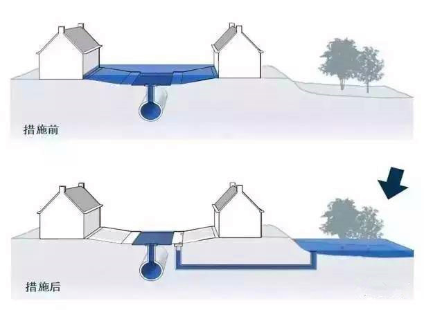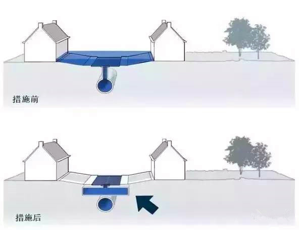 綠地和游樂(lè)區(qū)可用于緩沖大暴雨。在那里,水滲進(jìn)土壤中或繼續(xù)流入溝渠或下水道中。